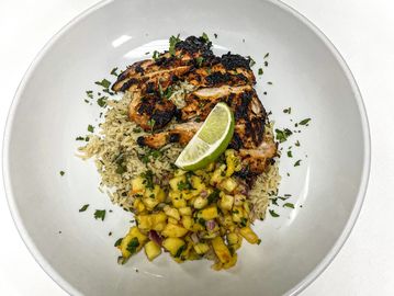 Cilantro Lime Honey Chicken Rice Bowl with Pineapple Habanero Salsa